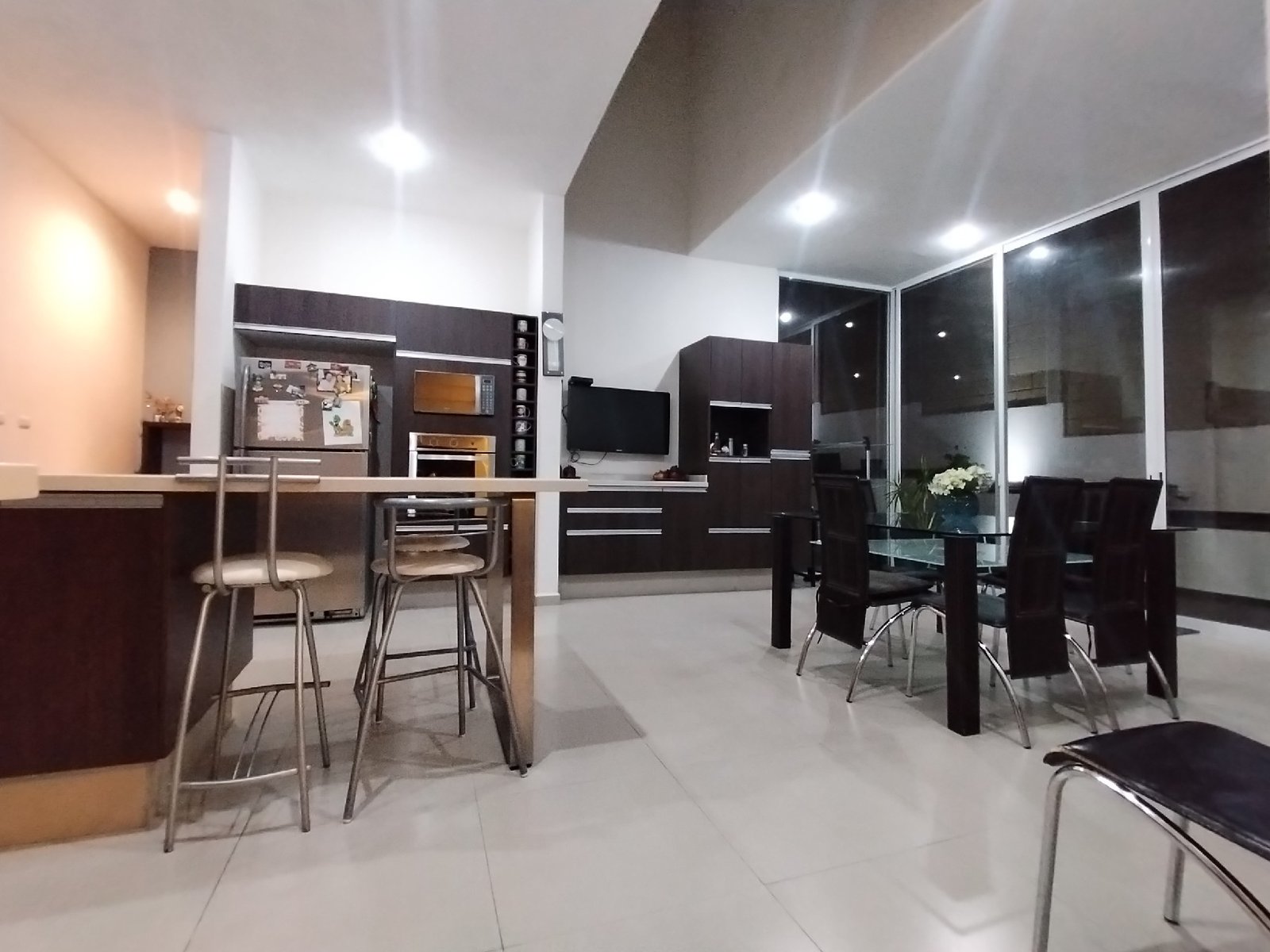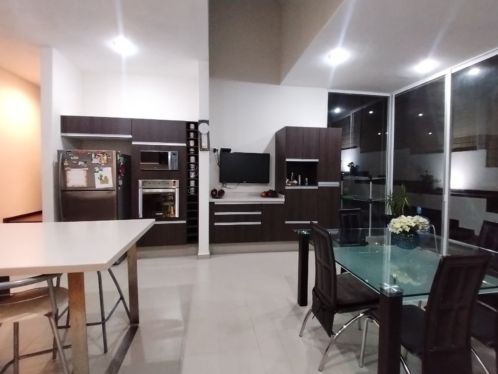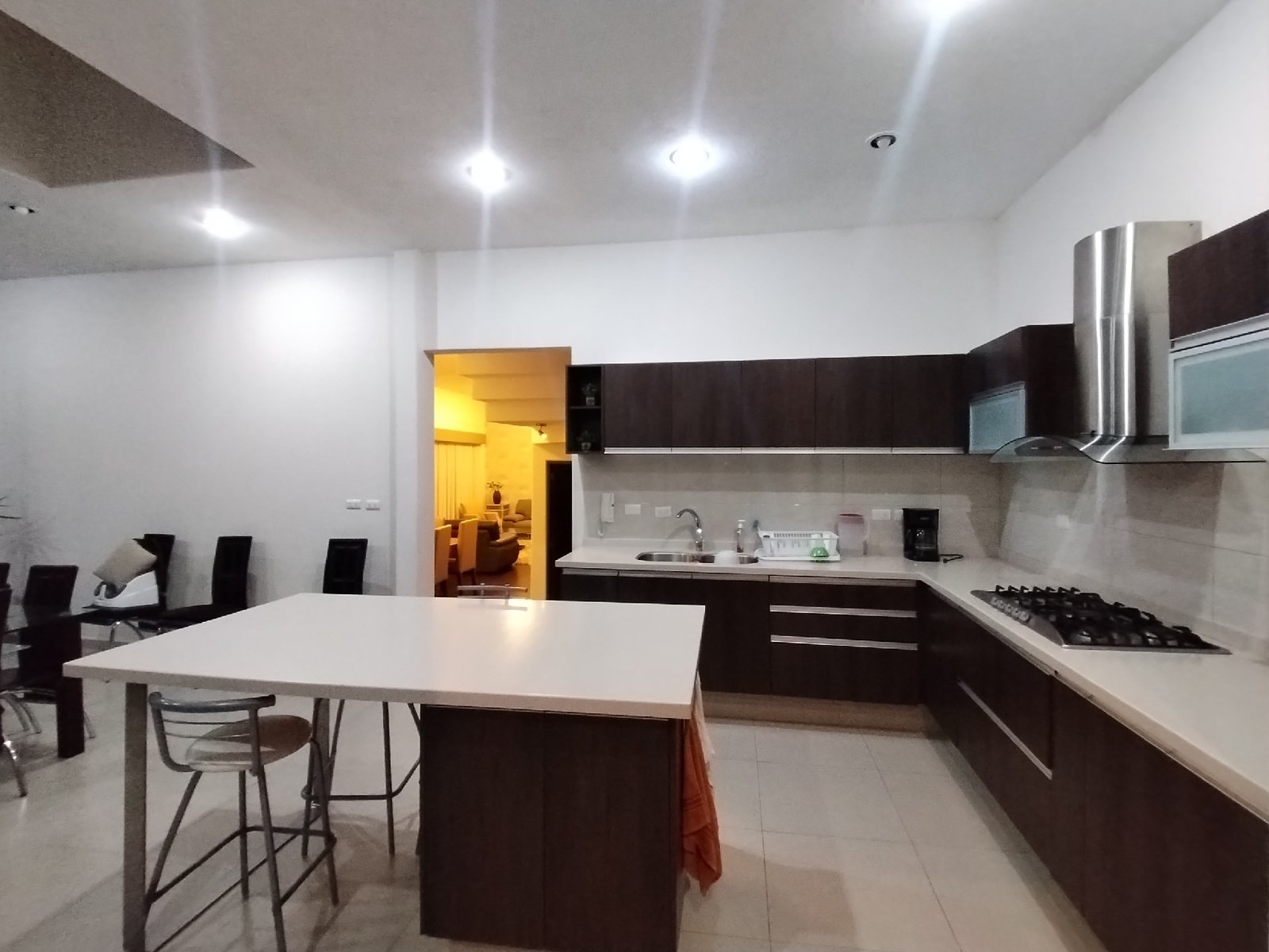 - Cocina integral equipada con isla central y espacio para un antecomedor con capacidad para 8 personas.